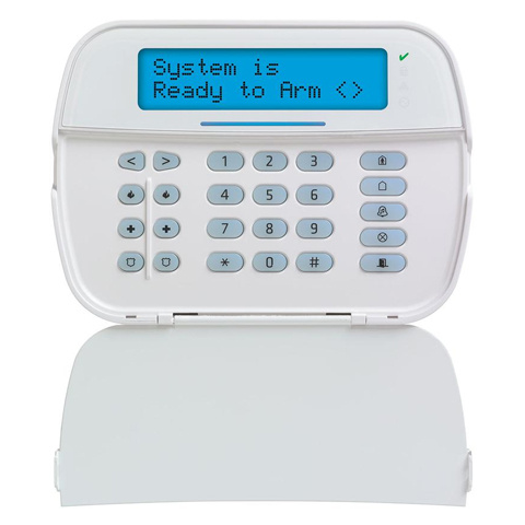 Szöveges LCD billentyűzet, beépített, vezeték nélküli adó-vevővel	Az LCD billentyűzet főbb jellemzői			Beépített vezeték nélküli adó-vevő.			Magyar nyelv támogatása.			Globális partíció állapot kijelzés.			128 zóna támogatása / kijelzése.			Teljes, 32 karakteres programozható címkék.			Menü-vezérelt programozás.			Modern, keskeny kivitelű fekvő billentyűzet.			Fehér háttérvilágítású billentyűk.			Kék LCD.			5 programozható funkciógomb.			Óra pr