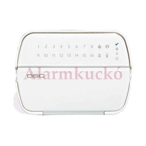 16 zónás AC kijelzés PGM kimenet / zóna bemenet POWER központokhoz 5 funkció gomb Szabotázsvédett FAP gombok Többszólamú ajtócsengő Szabályozható háttérvilágítás és zümmer hangerő Billentyűzet : LED Gyártó: DSC