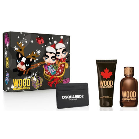 Set obsahuje: EDT Dsquared2 Wood Pour Homme 100ml + Dsquared2 Wood Pour Homme tusfürdő gél 100ml + Púzdro na karty