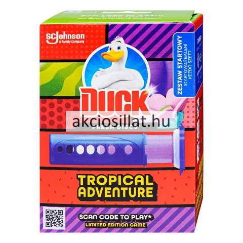 Duck Fresh Discs WC-Tisztító Korong Tropical Adventure 36ml – Exotikus frissesség minden öblítéssel Frissítő egzotikus élmény A Duck Fresh Discs Tropical Adventure WC-tisztító korong egzotikus gyümölcsökkel és zamatos illatokkal varázsolja frissé és tiszt