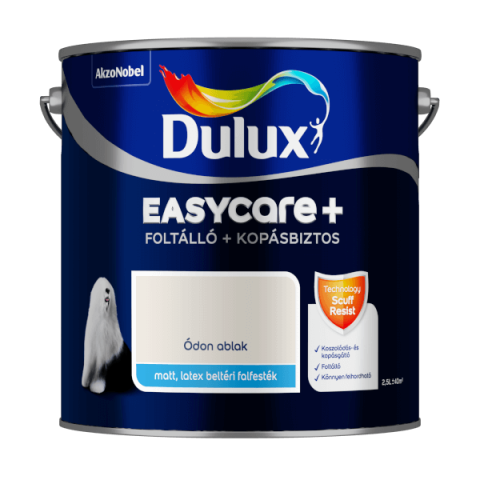 1 kép Dulux EASYCARE+ FOLTÁLLÓ+KOPÁSBIZTOS BELTÉRI FALFESTÉK 2,5L ÓDON ABLAK