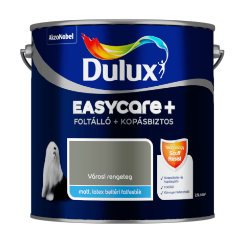 1 kép Dulux EASYCARE+ FOLTÁLLÓ+KOPÁSBIZTOS BELTÉRI FALFESTÉK 2,5L VÁROSI RENGETEG