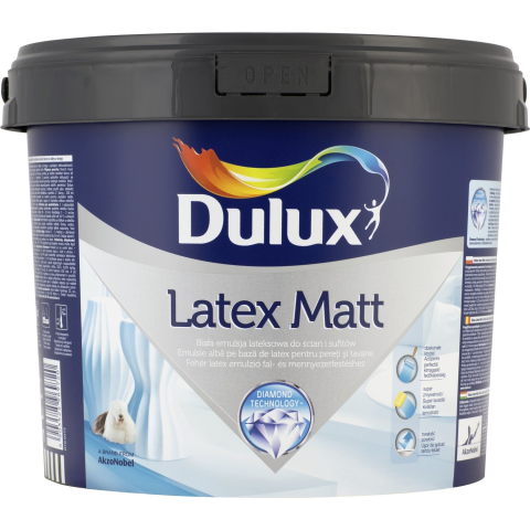 A Dulux Latex Matt fehér latex fal- és mennyezetfesték kiválóan alkalmas ellenálló bevonatok létrehozására beltéri falfelületeken. A termék gyorsan, könnyen felhordható. A létrejövő matt felület rendkívül tartós, ellenáll többszöri lemosásnak, és szerkezetének köszönhetően lég- és páraáteresztő. A festék alkalmazható nagy igénybevételnek kitett lakó- és közösségi épületekben (pl. hivatalok, iskolák, óvodák, stb.).