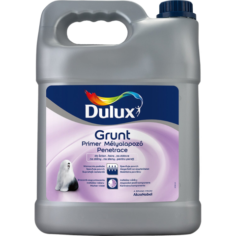 A Dulux Grunt impregnáló mélyalapozó beszívódás után stabilizálja, megerősíti és egyenletessé teszi a falat, valamint megkönnyíti a festék tapadását. A felhasználásra kész, hígítást nem igénylő mélyalapozó felvitelét segíti halványlila színe, mely jelzi a már lefestett területet.