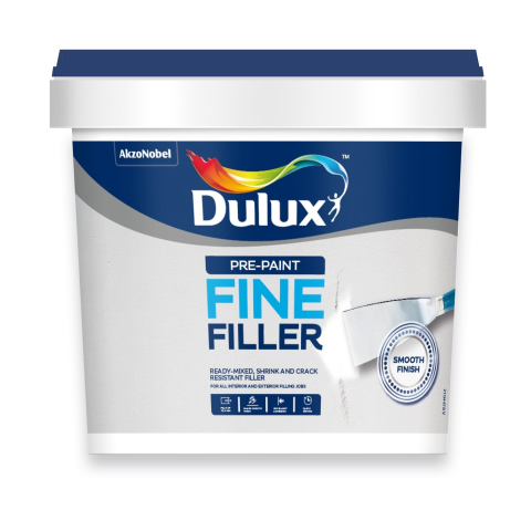 A Dulux Fine filler felhasználásra kész extra finom glett beltéri falfelületek hajszálrepedéseinek festés/tapétázás előtti kiegyenlítéséhez. Használatával könnyedén javíthatóak a kisebb ( max. 2 mm) repedések és sérülések. Tökéletesen sima, száradás után azonnal festhető felületet biztosít.
