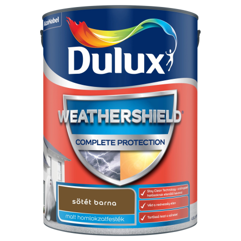 1 kép Dulux Weathershield Complete Protection homlokzatfesték Sötétbarna 4,5 l