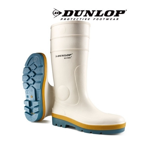 DUNLOP Acifort Tricolour fehér PVC munkavédelmi munkavédelmi csizma speciális kétrétegű talp Cikkszám: GAND95136-45 ellenálló és tartós, PVC plusz nitrilgumi alapanyagú, teljesen vízálló prémium csizma higiénikus, fehér felsőrésszel speciális kétré