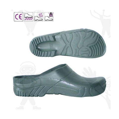 KERTI PAPUCS LEU10 - zoknira húzható zöld PVC kerti papucs - alacsony kéreg, csúszásbiztos talp, vízálló - dupla méretek 35-től 46-ig EU szabvány: EN347