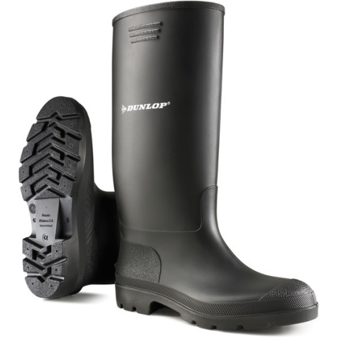 DUNLOP PRICEMASTOR 380PP FEKETE SAV- ÉS LÚGÁLLÓ CSIZMA: • fekete színű, tiszta PVC munkacsizma általános ipari és mezőgazdasági felhasználásra • ellenáll savaknak, lúgoknak, fertőtlenítőszereknek • alaktartó formai kialakítás, vastag, fröccsöntött, csúszá