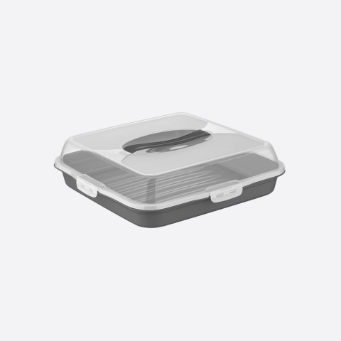 Nem tartalmaz káros anyagokat BPA mentes . Ideális élelmiszerek és pékáruk tárolására és szállítására. A fedél 4 retesszel záródik, és praktikus fogantyúval rendelkezik a kényelmes szállításához. Hossza 36 cm Szélesség 36 cm Magasság 11 cm Tisztítás: Sem