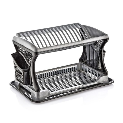 Ez a kétszintes edényszárító ideális választás azoknak, akik sok edényt szeretnének egyszerre elhelyezni szárítás közben. Az emeletes kialakítás helytakarékos, miközben külön részt biztosít a tányéroknak, poharaknak és evőeszközöknek.