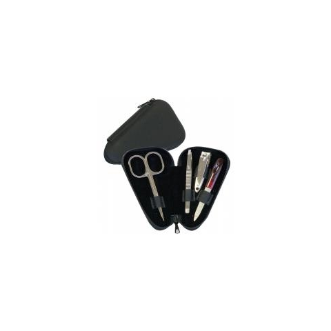 készült. 6,5 cm széles, 10,5 cm hosszú, 2 cm magas. Nem foglal sok helyet, így kényelmesen elfér táskájában. A manikűr készlet tartalma: - hajlított körömvágó olló,- szemöldökcsipesz,- kicsi körömcsipesz, - körömreszelő 8,5 cm.