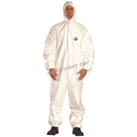 TYVEK® CLASSIC XPERT 40501-506 • Tyvek® 1431N polietilén anyagú (41 g/m2), fehér, kapucnis védőoverall • véd 1 mikronnál (μ) nagyobb szemcsenagyságú porok, és radioaktív részecskék ellen • 480 percig véd 30% kénsav, 50% foszforsav 40% nátriumhidroxid és 1