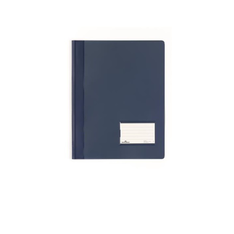 Gyorsfűző PVC Durable Duralux A/4 extra erős sötétkék Elegáns, áttetsző PVC mappa, műanyag bevonatú lefűző szerkezettel, belső zsebbel.Címketartóval névjegykártyák számára (57 x 90 mm) a borítólapon. Extra széles.Helykialakítással függőmappa sín számár