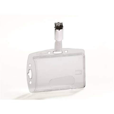Azonosítókártya-tartó, akril, zárt, csíptetővel, DURABLE Víztiszta azonosító-, és biztonságikártya-tartó forgatható csíptetővel. -zárt kivitelű biztonsági kártyatartó -1 db kártyához -tetszés szerint álló vagy fekvő formátumban is használható -vízt