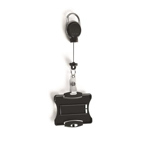 1 kép DURABLE Azonosítókártya-tartó, kihúzható, karabineres, DURABLE "Extra strong", kártyatartóval, fekete