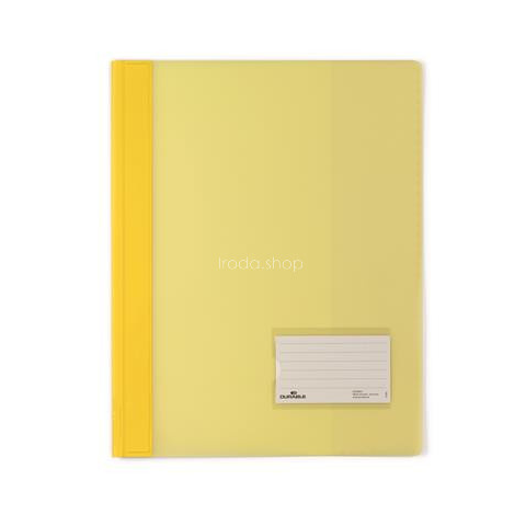 Gyorsfűző, A4, extra erős, széles, DURABLE, sárga Elegáns, áttetsző PVC gyorsfűző színes előlappal és hátlappal. -alkalmas a lyukasztott tasakok fűzésére az extra széles A4 formátumnak köszönhetően -rendkívül strapabíró, szakadásálló lefűzőszerkeze