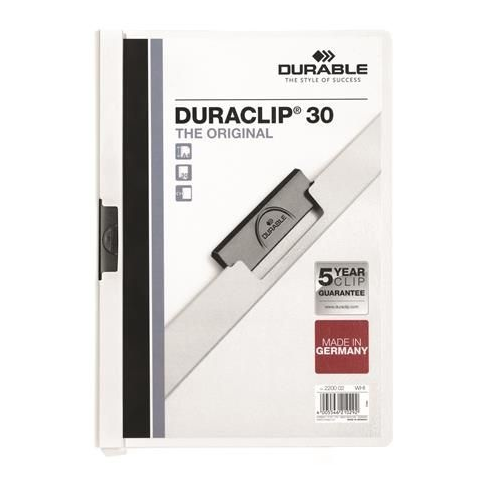 Az eredeti DURACLIP® tartós műanyagból készült klipmappa, ideális prezentációk, iratok, ajánlatok, konferenciák, szemináriumok jegyzeteinek vagy riportoknak lyukasztás nélküli lefűzérésre.
