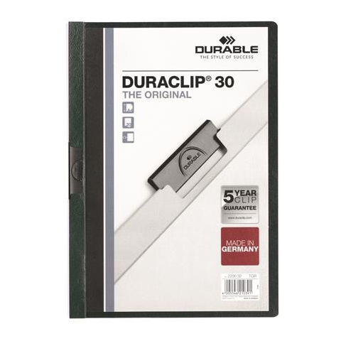 1 kép DURABLE Gyorsfűző, klipes, A4, DURABLE "DURACLIP® 30", sötétzöld