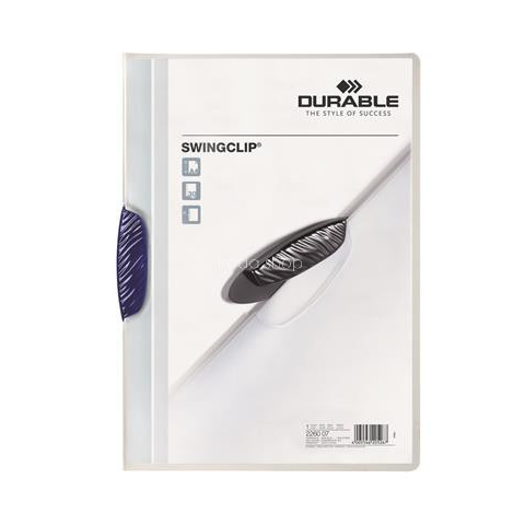Gyorsfűző, klipes, A4, DURABLE Swingclip® 30, sötétkék A SWINGCLIP egy vonzó, fiatalos klipmappa, minden típusú prezentációhoz, irathoz, rugalmas polipropilénből. -egyszerű és gyors dokumentumkezelés az oldalra kihajtható műanyag klipnek köszönhetőe