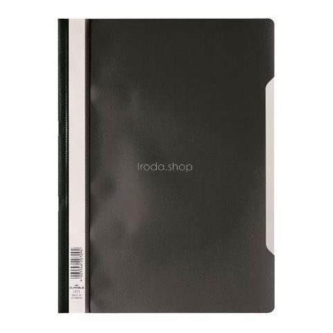 Gyorsfűző, PP, A4, DURABLE Economy, fekete Sztenderd, merev PVC gyorsfűző átlátszó előlappal és színes hátlappal, feliratozható betétlappal. -lyukasztott dokumentumok archiválásához -praktikus fogókivágással, mely megkönnyíti a lapozást -oldalsó f