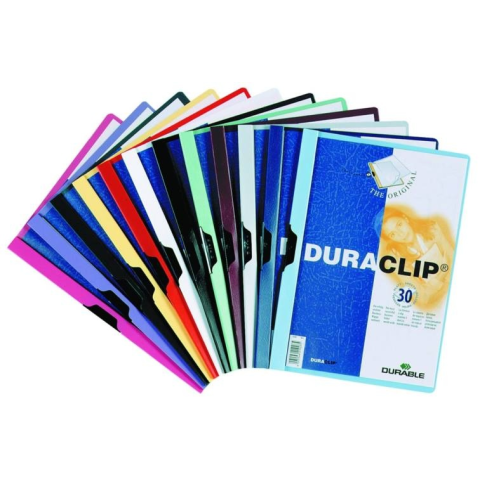 Műanyag anyagú, víztiszta előlappal, színes hátlappal, oldalán speciális elasztikus acél klippel ellátott mappa, amelyek lehetővé teszik az iratok lyukasztás nélküli lefűzését és elegáns prezentálását. A mappa maximum 30 lap lefűzésére alkalmas.
