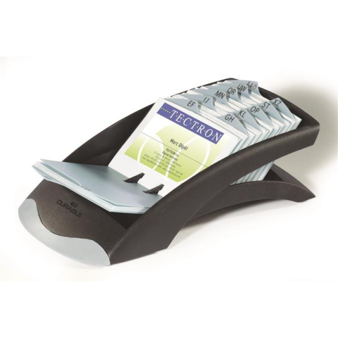 1 kép DURABLE Névjegykártyatartó, műanyag, 200 db-os, A-Z regiszterrel, fekvő, DURABLE, VISIFIX® , fekete