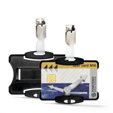 Névkitűző Durable 85x54 mm biztonsági kártyához fekete - P4100-0139 - Névkitűzők, ültetőkártyák -