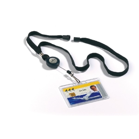 Névkitűző tartó Durable kihúzható fekete szalaggal Névkitűző tartó Durable kihúzható fekete szalaggal