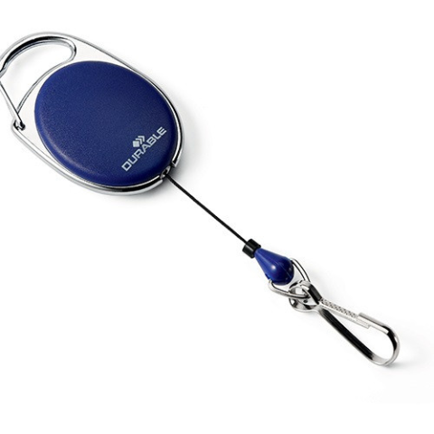 1 kép DURABLE Névkitűző tartó Durable Style, kihúzható, karabineres kék