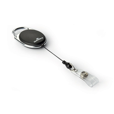 1 kép DURABLE Névkitűző tartó Durable Style, kihúzható, patentos fekete 10 db/csomag