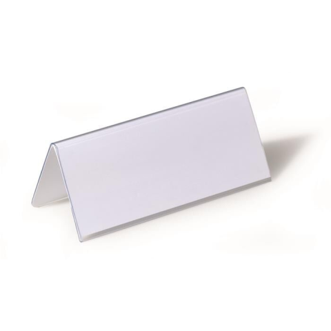 Névtábla tartó, asztali, 61/122x150 mm, DURABLE Asztali névtáblatartó. -felhasználási terület: irodákba -cserélhető üres betétlapokkal a kétoldali feliratozáshoz -tájolás: fekvő -betétlapok mérete: 61/122 x 150 mm -belső méret: 150 x 61 mm (szé x m...