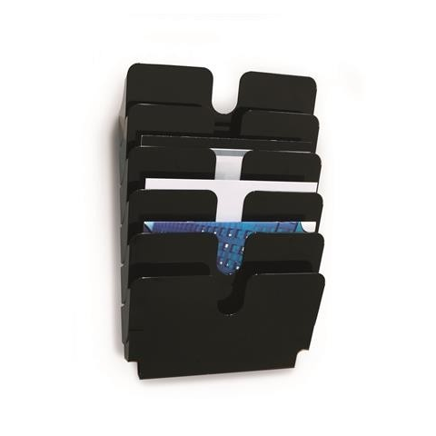 Prospektustartó modern designban A4-es dokumentumok bemutatására. -beltéri használatra -ideális a bejáratnál, kiállító helyeken elhelyezett tájékoztatókhoz -műanyag -fekvő A4-es dokumentumokhoz -fekete színben -bővíthető 6 kg teherbírásig -6 rekesz