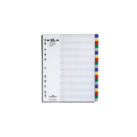 DURABLE Regiszter DURABLE műanyag A/4 maxi 20 színes + index fülek regiszter és tartozékai 1 kép