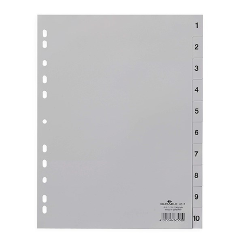 DURABLE Regiszter DURABLE műanyag nyomtatott A/4 1-10 részes szürke regiszter és tartozékai 1 kép