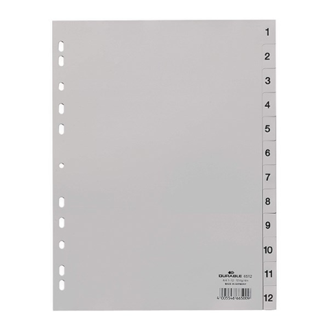 DURABLE Regiszter DURABLE műanyag nyomtatott A/4 1-12 részes szürke