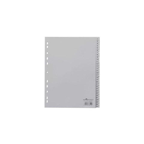 DURABLE Regiszter DURABLE műanyag nyomtatott A/4 1-31 részes szürke regiszter és tartozékai árgrafikon