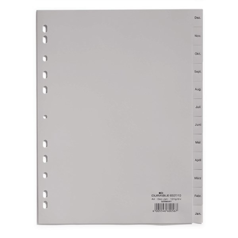 Regiszter DURABLE műanyag nyomtatott A/4 Jan-Dec 12 részes szürke A