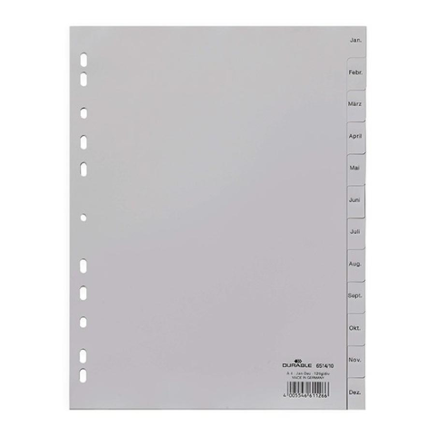 DURABLE Regiszter DURABLE műanyag nyomtatott A/4 Jan-Dec 12 részes szürke B