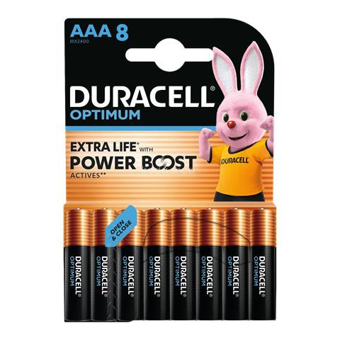 1 kép DURACELL Elem, AAA mikro, 8 db, műanyagmentes, DURACELL "Optimum"