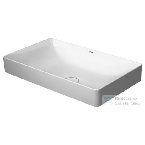 Duravit DuraSquare 60x34,5 cm ráültethető mosdó 2355600000 méret: 600x345 mm csiszolt, túlfolyó nélkül, csaplyukpad nélkül, lefolyószelep kerámia takarósapkával, rögzítőkészlettel