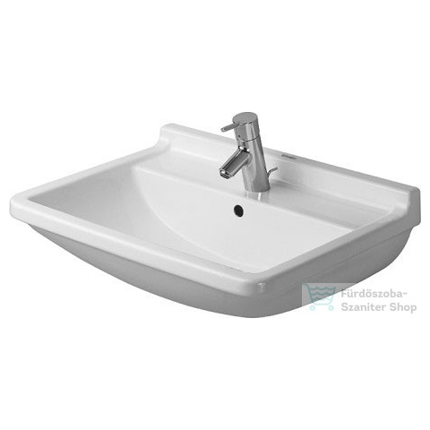 Duravit Starck 3 mosdó 0300650000 túlfolyóval, csaplyukpaddal, alul mázas 650x485 mm Opcióként rendelhető szifontakaró és mosdóláb