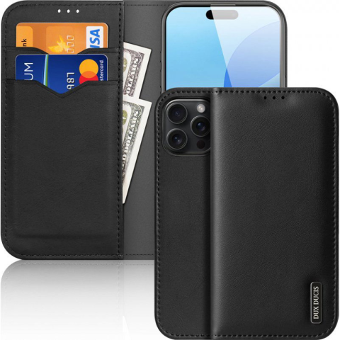 DUX DUCIS Hivo iPhone 16 Pro Max fekete flipes bőr tok (CAS148555A)