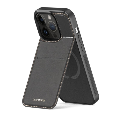DUX DUCIS RAFI MAG szilikon telefonvédő (kitámasztó, kártyazseb, RFID, MagSafe) FEKETE