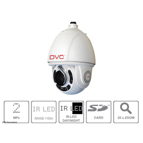 Technikai adatok Modell DCN-PV320R Leírás 20x zoom PTZ IR kamera Gyártó Technológia IP videó Optikai érzékelő Sony EXMOR IMX138 DSP Hisilicon HI3518 Zoom 20x Videó kimenet VBS 1.0Vp-p/75 Ohm Objektív 4.7 - 94 mm Zár F1.6 - F3.5
