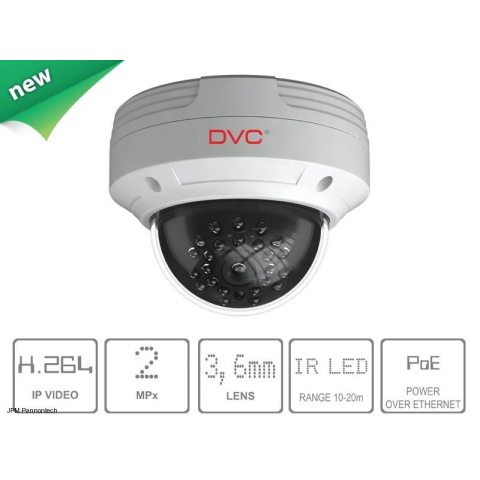 Technikai adatok Modell DCN-VF323 Leírás IP vandálbiztos dome kamera fix objektívvel Gyártó Technológia IP videó Optikai érzékelő 1/3'' APTINA AR0230 CMOS DSP Hisilicon HI3516D Video kimenet Nem Ház Vandálbiztos dome Objektív 3,6 mm
