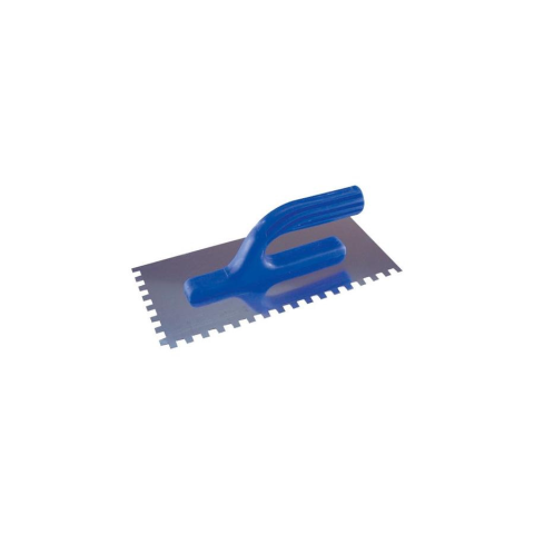 1 kép DWD Glettelőkanál, csempéző; 12,5×27cm (8×8mm-es fogazás), (műanyag nyél); rozsdamentes