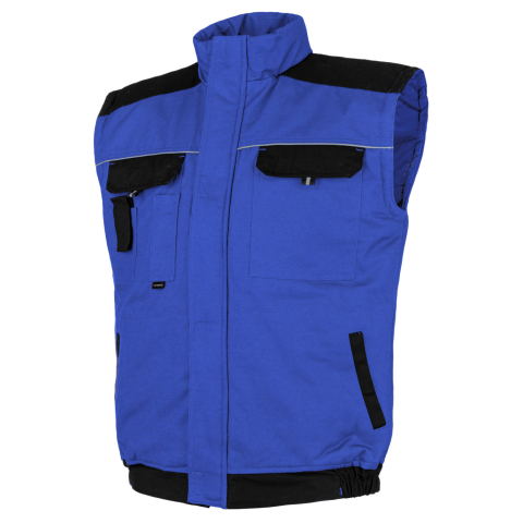 Primo mellény bélelt mellény mellkasi zsebek, mobil- és ceruzatartó zseb tépőzáras zsebek elöl-hátul fényvisszaverő kiegészítők teljes hosszúságú cipzár dekorsávval, a nyakrészen tépőzárral az oldalakon elasztikus gumi a nagy előnye a megerősített vállrés