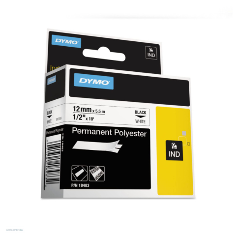 1 kép DYMO Betűnyomó kazetta gépi 12mmx5,5m Dymo poliészter fekete-fehér