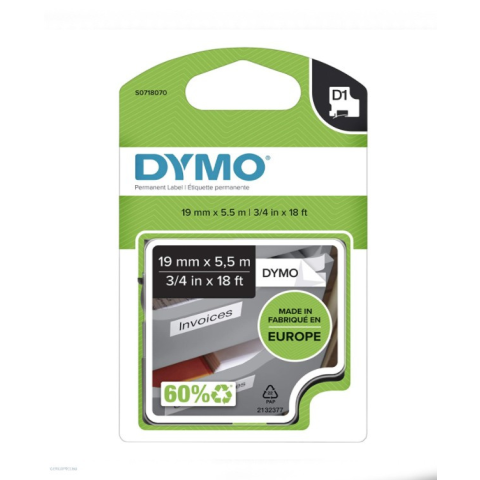 1 kép DYMO Betűnyomó kazetta gépi 19mmx5.5m Dymo poliészter fekete-fehér